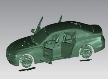 采用高精度攝影測量系統與3DSS三維掃描儀配合使用的方法,可以完成對大型物品的三維外觀掃描,如汽車、戰斗機、船模、大型鑄造件等,可掃描10多米的物品。