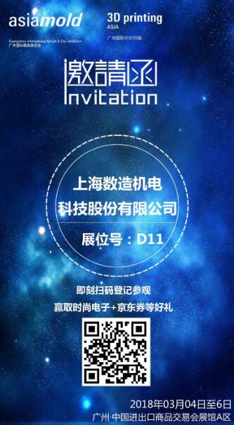 查看更多上海數(shù)造將亮相第十二屆“廣州國(guó)際模具展覽會(huì)(Asiamold)”,上海數(shù)造的發(fā)展道路離不開您的支持與肯定。2018年3月4日—6日,廣州·中國(guó)進(jìn)出口商品交易會(huì)展館A區(qū)D11號(hào)展位,恭候您的到來。